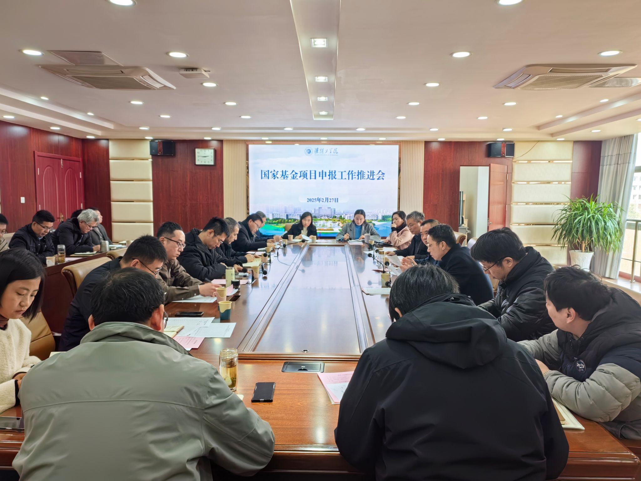 2025年2月27日下午,国家基金项目申报工作推进会在翔宇楼第四会议室召开,会议由严云洋副校长主持,研究院组织多名智库专家参会。